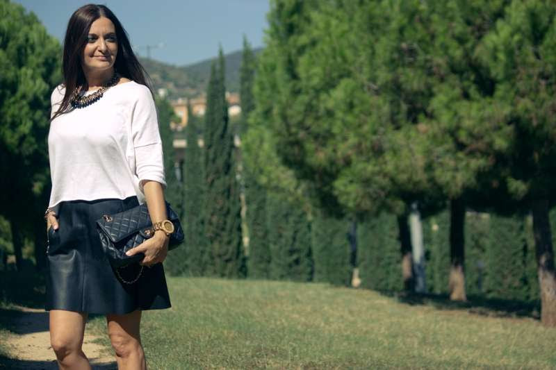 La falda, es de HyM del invierno pasado, no salió por el blog, pero la misma falda la vuelven a tener otra vez en la tienda. Y la combiné con mi jersey convertido en camiseta blanca, mi réplica del chanel 2.55 y mis bailarinas negras.
